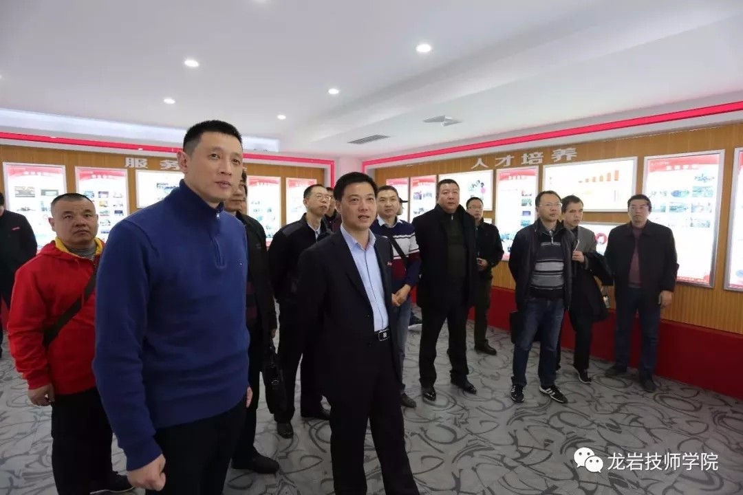 陈建生院长陪同李勇院长一行参观学院办学成果展、第二校区建设沙盘、闽西中央苏区红色广告陈列展以及电商、汽车实训基地。并详细介绍了学院办学历程、技能人才培养以及学院第二校区建设等情况。