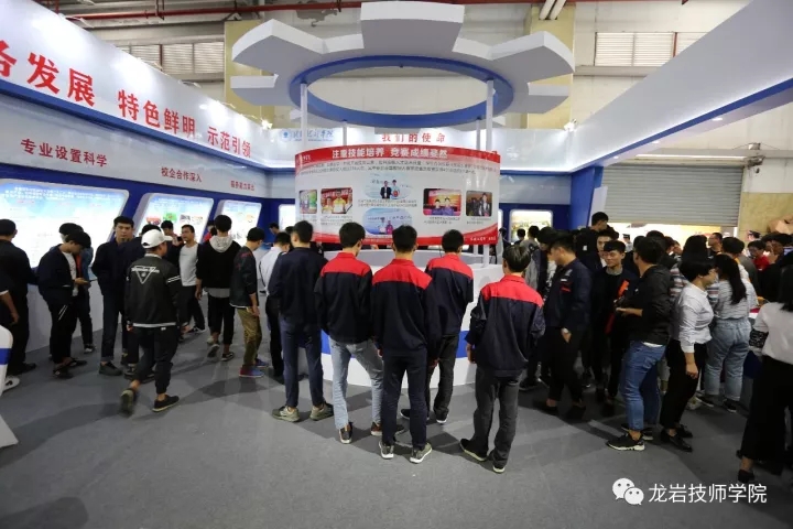 龙岩技师学院围绕办学情况、专业设置、校企合作、服务能力、技能竞赛、国际交流、高技能人才培养、第二校区建设等方面展示了学院近年来的办学成果;展示了部分学生代表的数控作品、3D打印作品,包括在国家、省级竞赛获奖作品;展示了3D打印机、光机电一体化教学设备、工业机器人等先进的实训教学设备,学生现场操作演示3D打印、工业机器人等引来过往群众拍手称赞。学院与企业产学研合作开发的“配电智能运维综合服务平台”及“智能充电桩的研发”等项目也在展会中亮相。众多企业代表对学院学生技能展示、作品展示表现出浓厚的兴趣,并主动对接学院洽谈校企合作事宜。