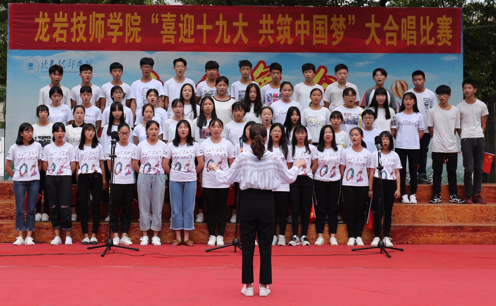 10月18日下午,我院在灯光篮球场隆重举行龙岩技师学院"庆祝十九大,共筑中国梦”大合唱比赛,学院党委书记、院长陈建生,院长助理吴柏林以及相关部门负责人出席本次比赛。六个教学系近千名学生代表参加比赛。各系代表队通过演唱《没有共产党就没有新中国》《歌唱祖国》《光荣啊,中国共青团》《祖国你好》等一首首脍炙人口的歌曲颂扬祖国的辉煌成就,庆祝党的十九大胜利召开。
