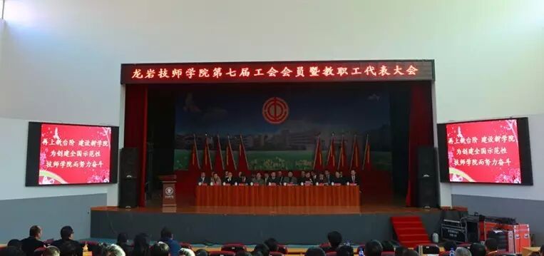 9时,龙岩技师学院第七届工会会员暨教职工代表大会开幕式在雄壮的国歌声中拉开帷幕。