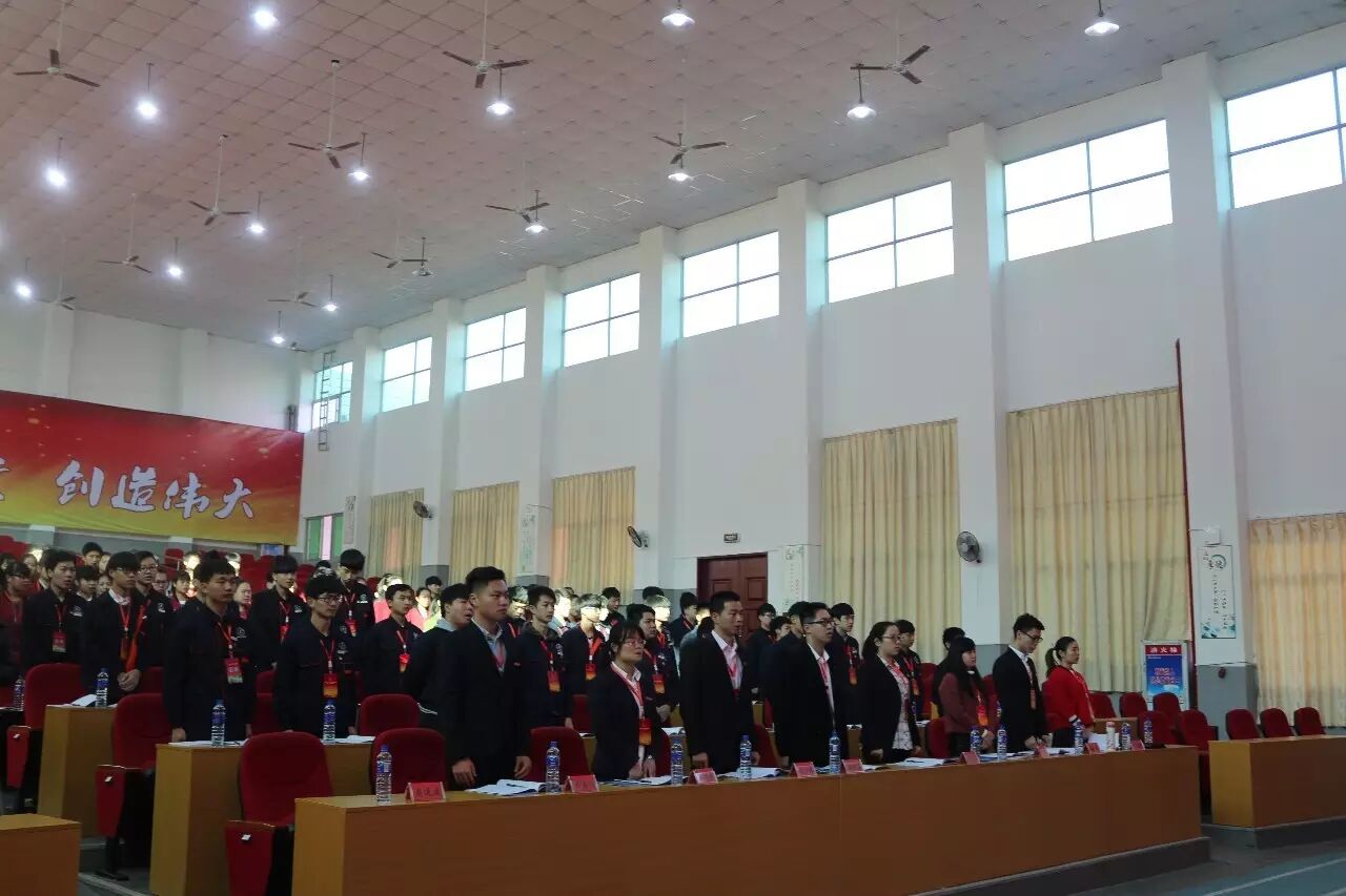 在激昂嘹亮的国歌声中,共青团龙岩技师学院第十一次代表大会开幕。