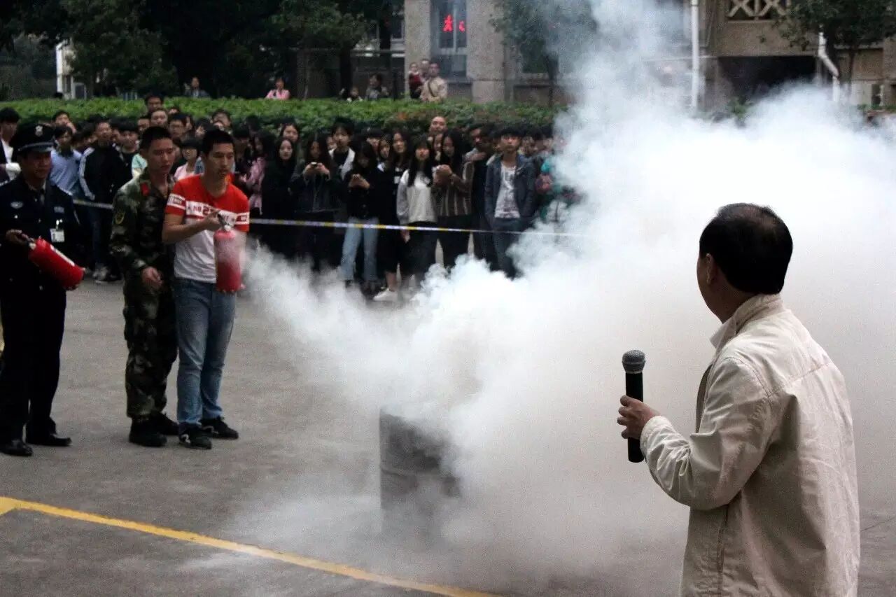 在广场上早已摆放好了作为演习用的火源,消防官兵为同学们进行了灭火器材的简单介绍,对各类灭火器的分类和灭火原理进行了详细讲解,同学们感到受益匪浅。随后部分学生、教职工进行了灭火实战演练,随着火焰被扑灭响起了同学们热烈的掌声。