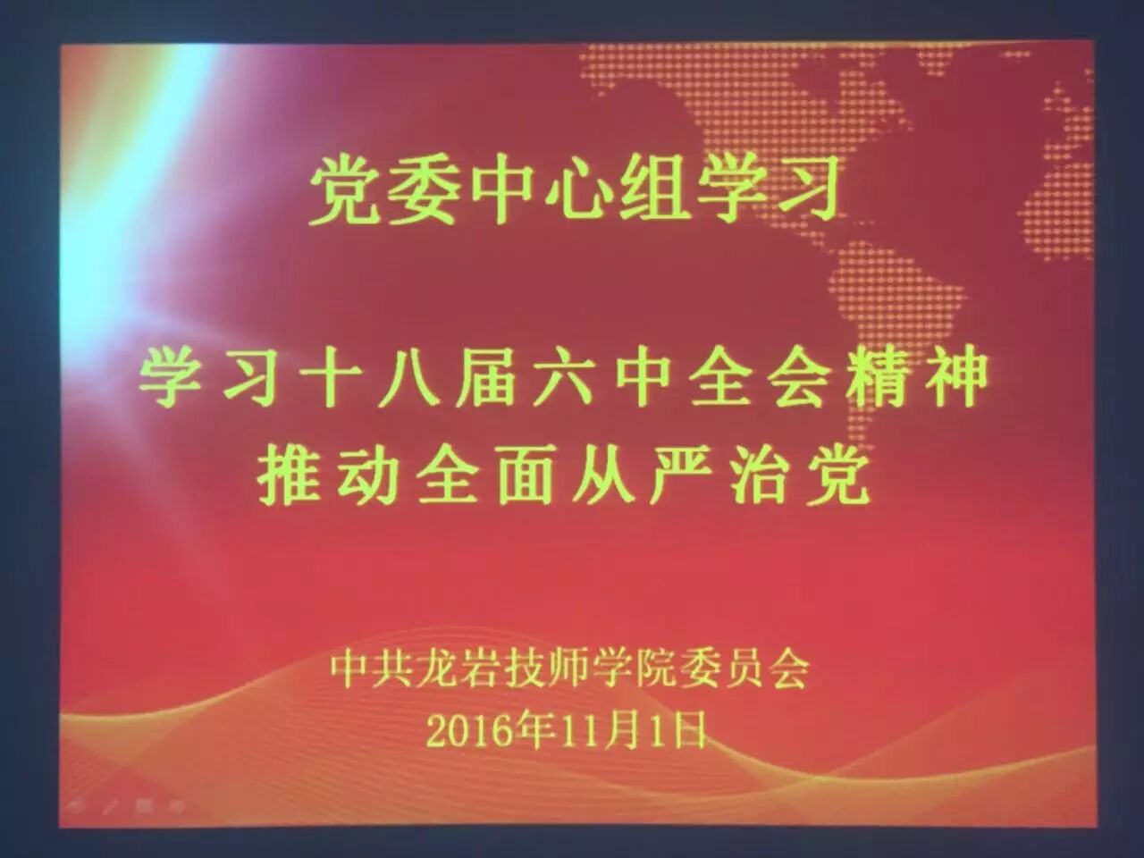 11月1日下午,学院党委中心组举办专题学习会,传达学习十八届六中全会精神,结合学院实际对学习宣传贯彻工作作出部署。院党委书记、院长陈建生主持会议,院领导、各支部书记及中层副职以上干部参加学习会。