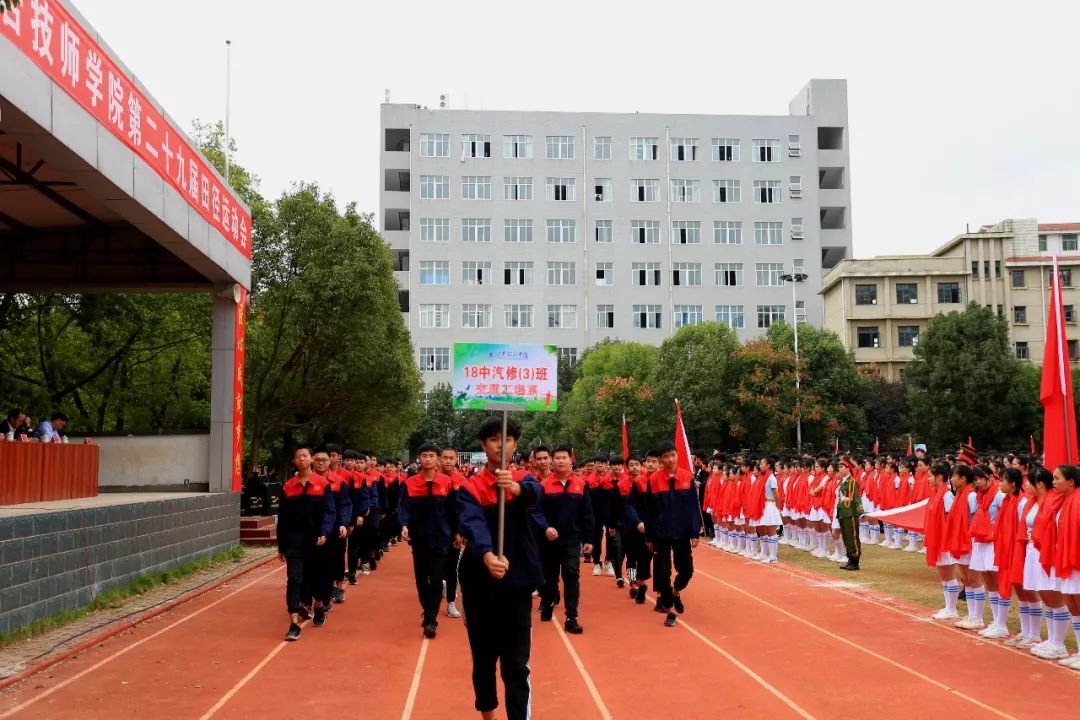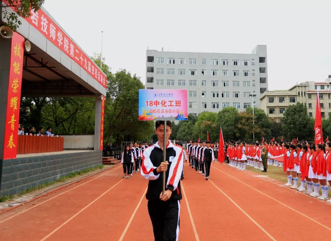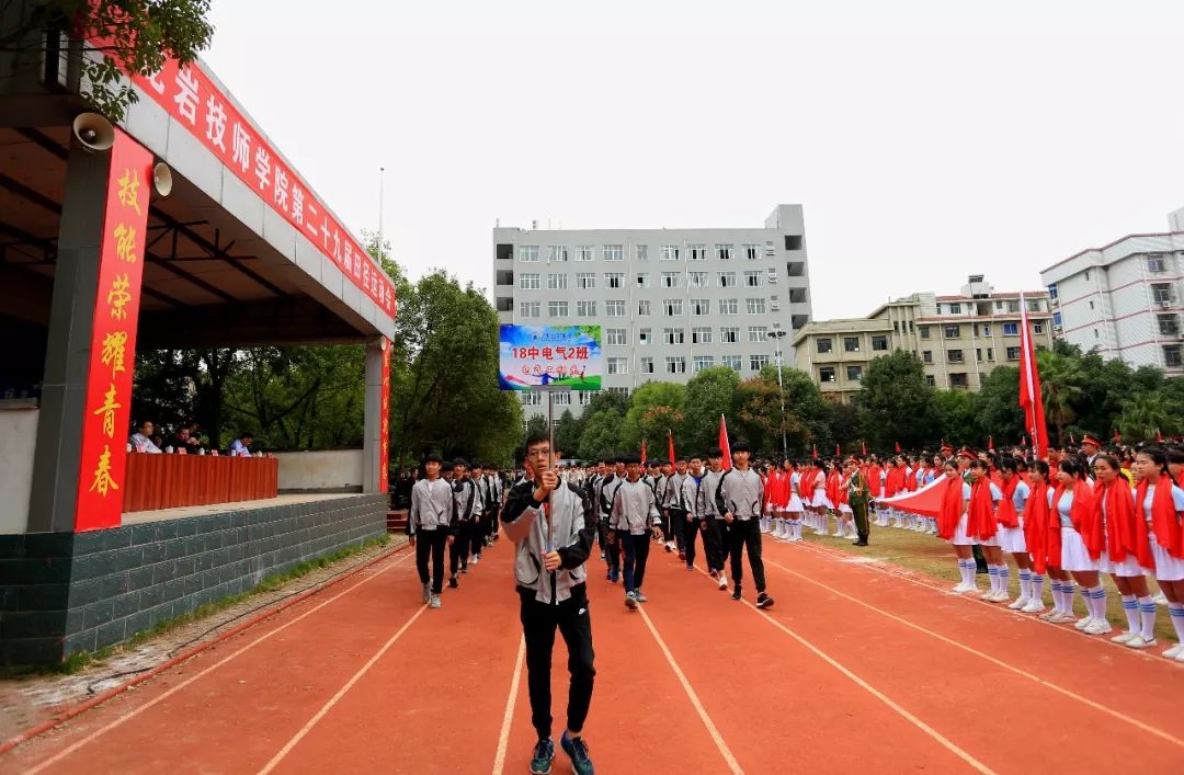 11月14日,秋风送爽,丹桂飘香,彩旗飘扬,鼓声铿锵,澎湃的心绪,燃烧在每个人的心中;喜悦的气氛,洋溢在每个人的脸上,龙岩技师学院第二十九届田径运动会隆重开幕。 在家院领导董祝元、黄春耀、朱毅贤出席开幕式。学院各部门、各系主要负责人,各系学生代表队,全体运动员、裁判员,部分教工、学生代表参加了开幕式。开幕式由院长助理吴柏林主持。 受学院党委书记,院长陈建生的委托,常务副院长董祝元致开幕辞并宣布学院第二十九届田径运动会正式开幕 开幕式上,首先入场的是国旗护卫队。随后标语方阵、鼓乐队、鲜花队、各系运动员代表们组成的一个个方阵,随着进行曲的响起,踏着清晨的鼓点陆续入场。他们朝气蓬勃,迈着铿锵有力的步伐,喊着振奋人心的口号,依次从主席台前走过,充分展现我院师生积极向上、团结奋斗的精神面貌。 国旗护卫队 标语方阵 校旗系旗彩旗方阵 鼓号队方阵 花束花环方阵 大型团体操方阵 每一个跳跃每一个转身,都跃动着无限活力,一场精彩表演洋溢着青春的活力,这场视觉盛宴婀娜了这个秋日,层云之下,你们就是最美的晴空。