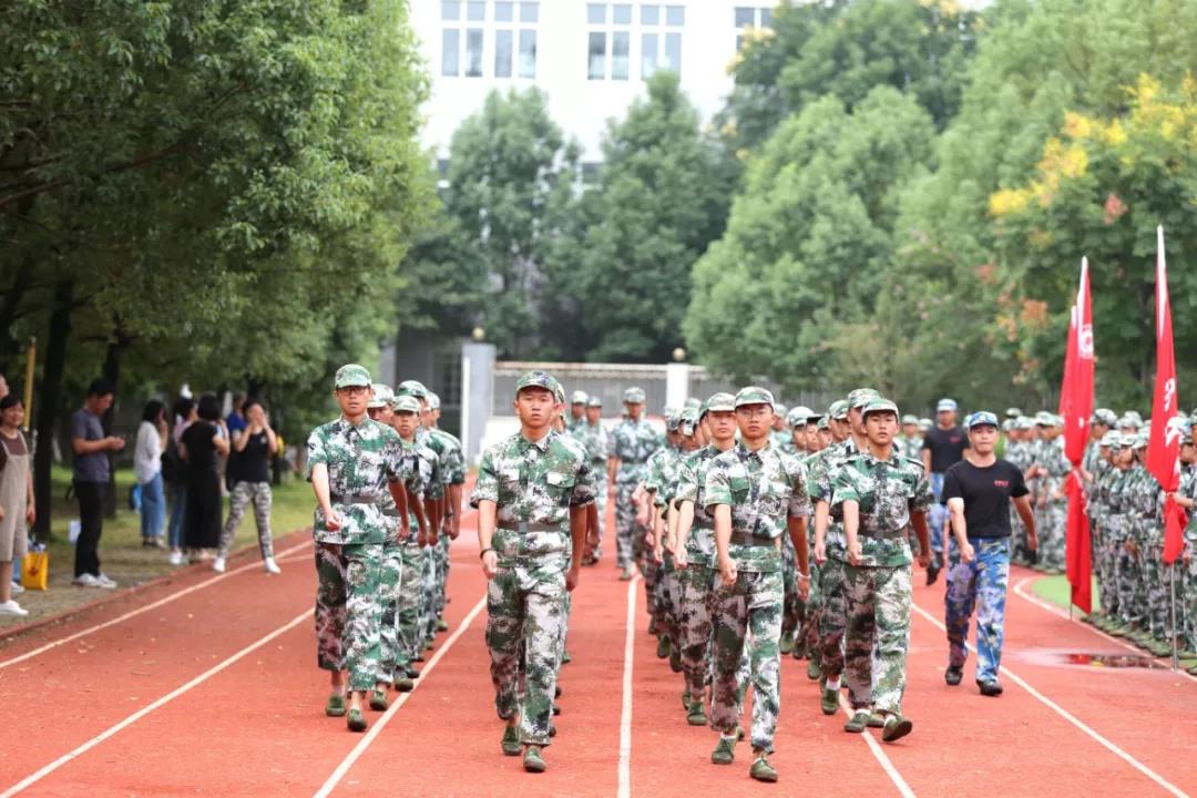 伴随着一声“出旗”号令发出,红旗飘飘,歌声嘹亮。军训会操大会正式拉开帷幕。