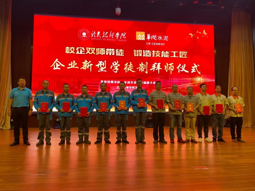 9月3日上午,龙岩技师学院与华润水泥“企业新型学徒制”拜师仪式在龙岩技师学院校本部匠心堂隆重举行。市人社局三级调研员范伯群、龙岩技师学院副院长高日星、市人社局专家工作和职业能力建设科科长温禄华、华润水泥控股福建大区副总经理孙晓清等出席开班仪式。华润水泥控股福建大区曹溪班、龙岩班、漳平班员工以及我院教师代表参加开班仪式。